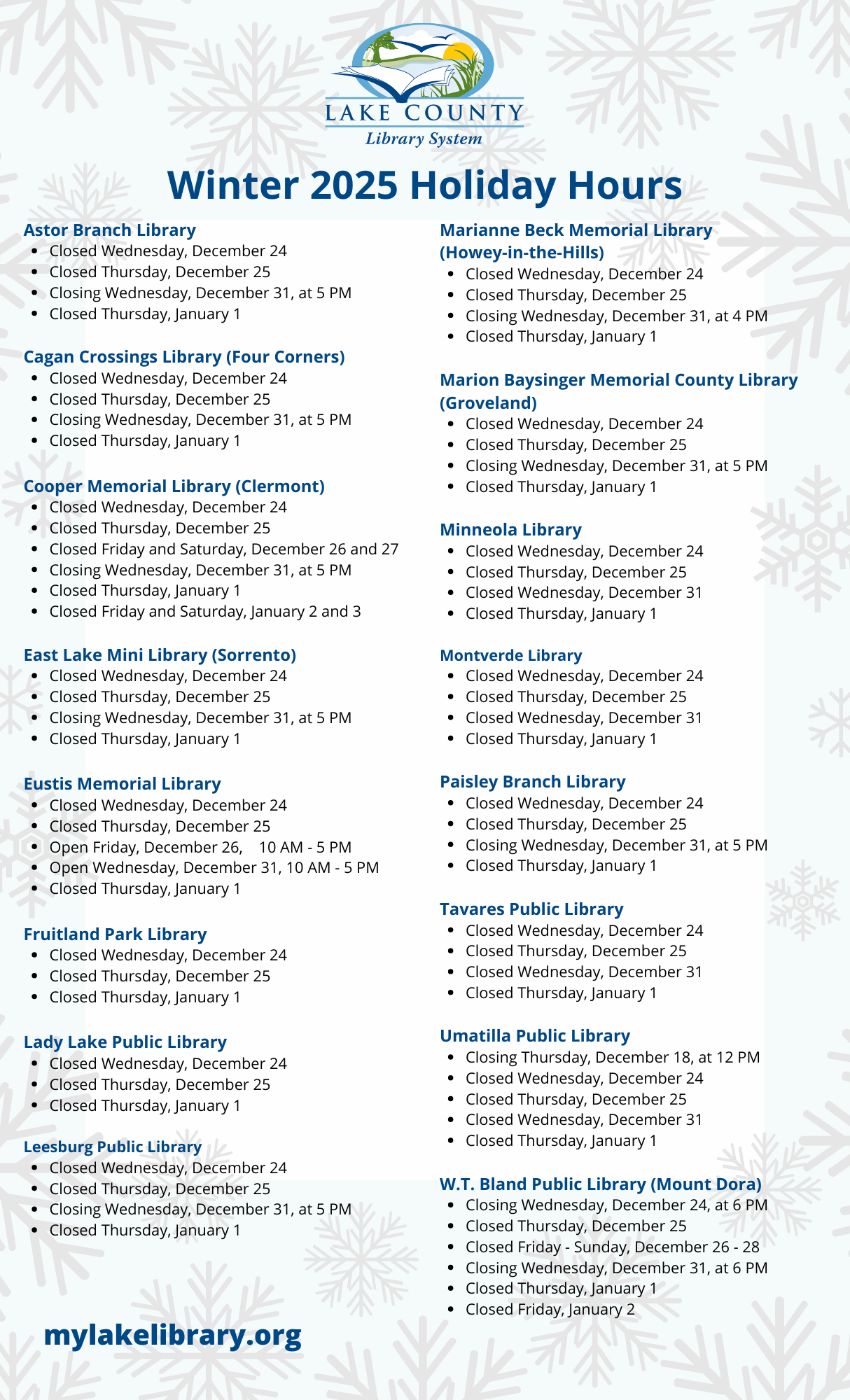 - Open Wednesday, December 31, 10 AM - 5 PM