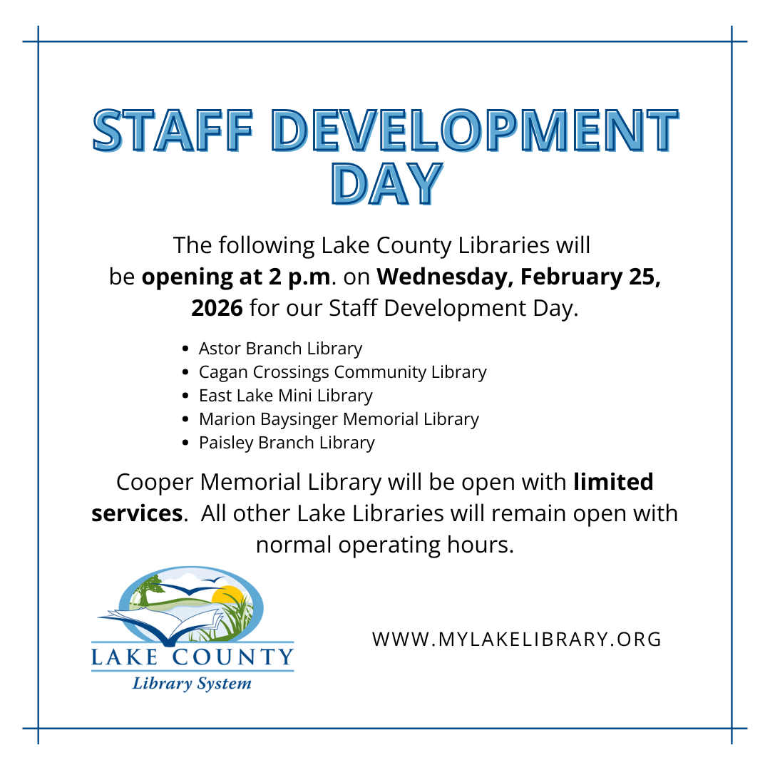 be opening at 2 p.m. on Wednesday, February 25, 2026 for our Staff Development Day: